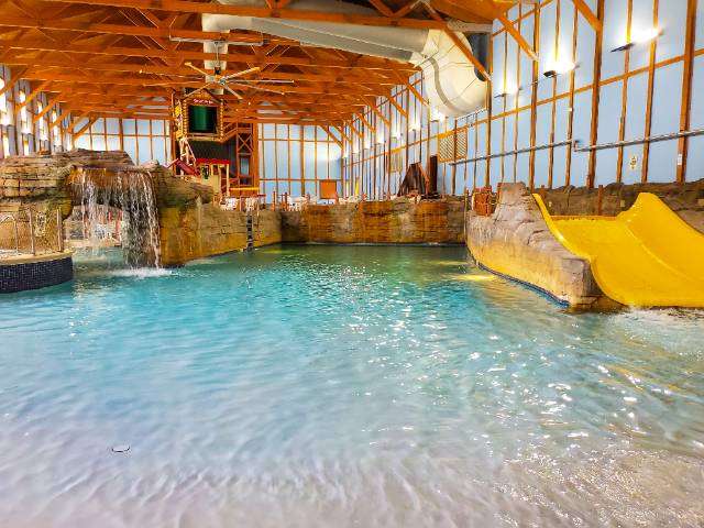 Timber Ridge Lodge & Water Park offers climbing, swimming and an on-site restaurant. The waterpark has 50,000 square-feet of slides, a lazy river, swimming pool and more. The park also features an arcade, arts and crafts, pool swings, toddler water play area and more. This water park is exclusive to hotel guests only.